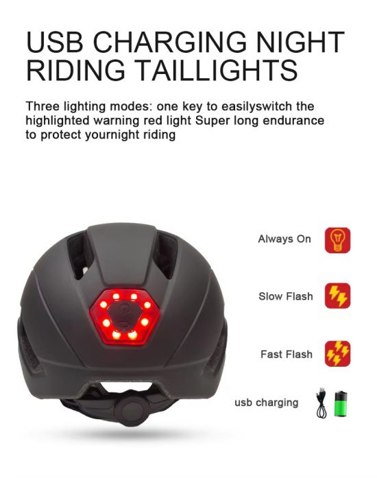 With a USB rechargeable tail light featuring multiple flash modes and a high-brightness warning, this helmet helps you stay visible and safe on night or low-light rides.