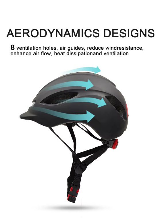 • Ventilated & Comfortable – Aerodynamic design with 8 ventilation holes and air guides reduces wind resistance, enhances airflow, and dissipates heat for a cool ride.